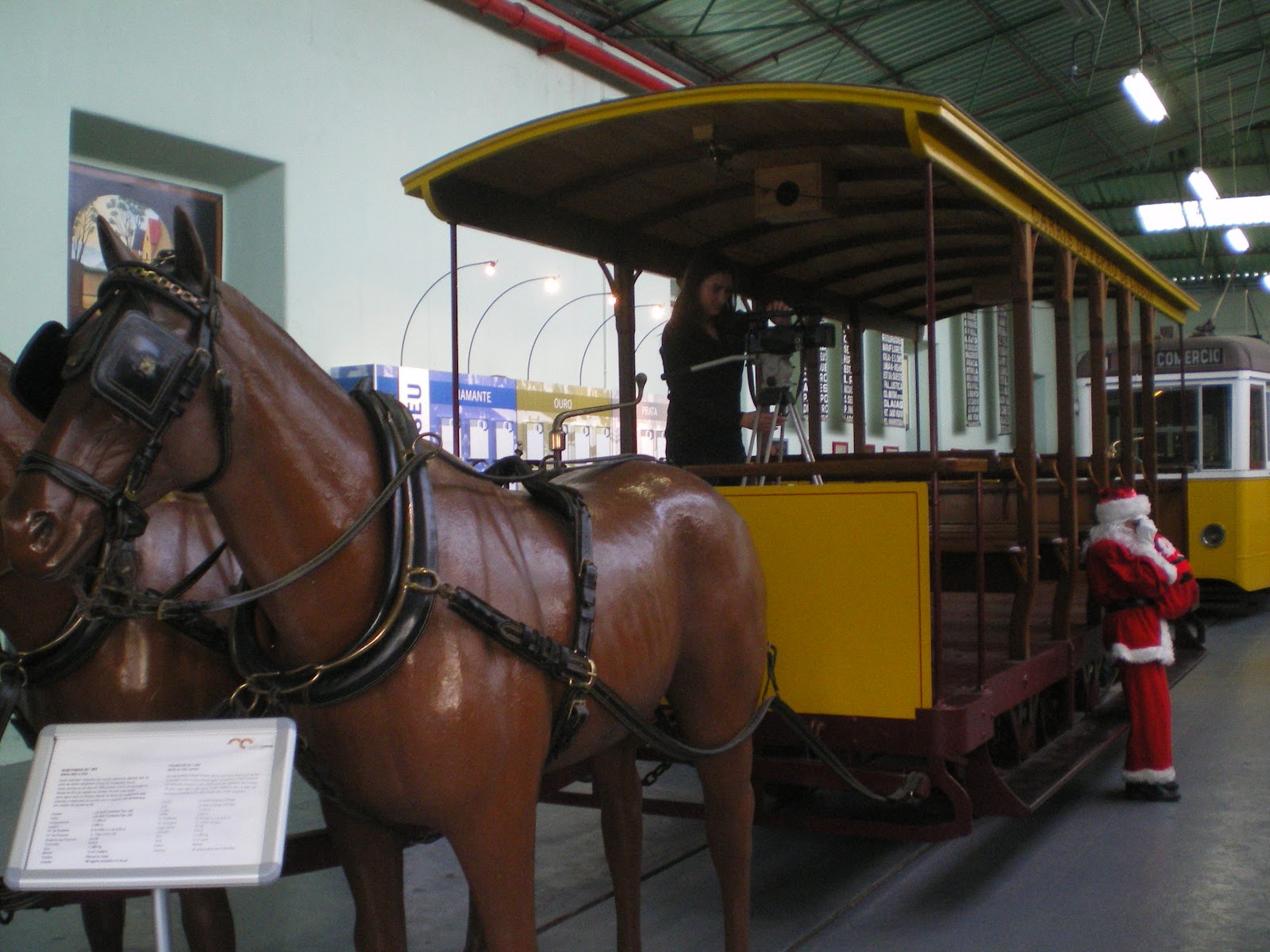 A estação principal da linha e largo em frente estavam embandeirados e ornamentados de arcos e grinaldas, de verdura e de emblemas nacionais! Uma linha de 32 carruagens […] estava postada sobre os ‘rails’ com os seus cocheiros e condutores singelamente uniformizados e postos sobre as plataformas, e os seus magníficos tiros de cavalos e muares perfeitamente arreados com as testeiras das cabeçadas ornadas de rosetas azuis e brancas [as cores da bandeira nacional do tempo da Monarquia]. Vinte e quatro dessas carruagens eram fechadas e oito abertas, destinadas aos fumistas.»